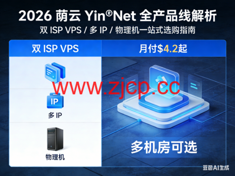 如果你正在找全球覆盖、双 ISP 住宅 IP、多 IP 可选、支持物理机的海外云服务器,荫云 Yin‑Net 绝对是 2026 年绕不开的一家服务商。它主打亚太 + 欧美多国节点,以纯净双 ISP / 原生 IP、国际线路稳定、套餐透明为核心优势,覆盖轻量 VPS、多 IP 限量机型、独立物理机全场景,不管是个人建站、跨境账号运营、流媒体解锁,还是企业高负载部署都能找到对应方案。
