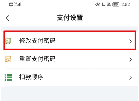 4、在绑定好银行卡后,便能开始修改支付密码了。