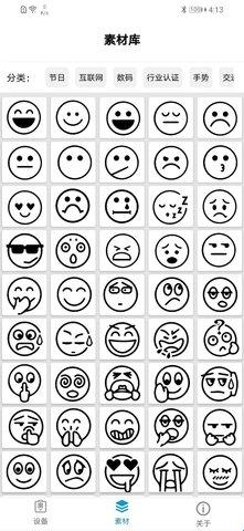 4.进入素材库,查看不同类型的素材信息,使用素材来丰富图片内容;