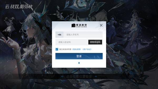 1、打开云战双帕弥什,输入手机号获取验证码登录;
