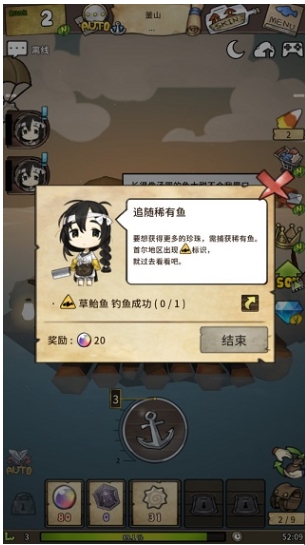 Auto:地图旁的Auto当你在天赋里升级自动导航技能就能解锁,后期放置获得珍珠天赋的必要途径。左下角的Auto是升满自动钓鱼后解锁的按钮