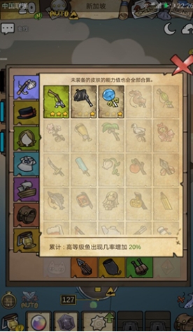 skin:收集的鱼竿,装扮等,能小小的满足下喜欢收集的玩家的需求