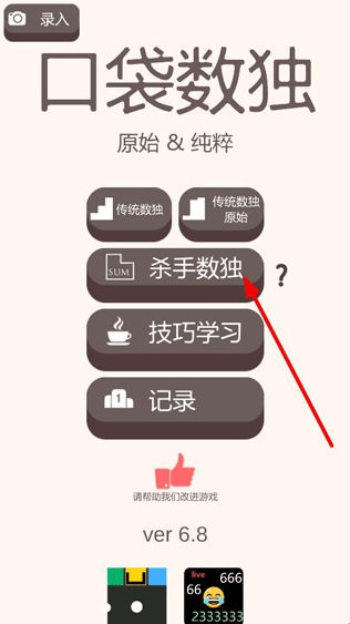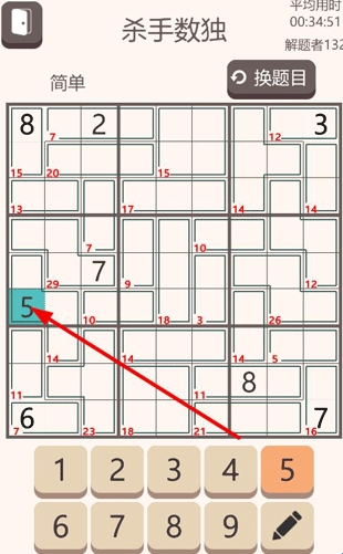 2、打开传统数独模式,将题目下方的数字填写进空格中,也可点击上方换题目降低数独难度;