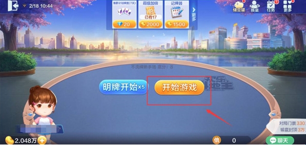 3、进入对战界面,我们可以选择明牌开始或者开始游戏,