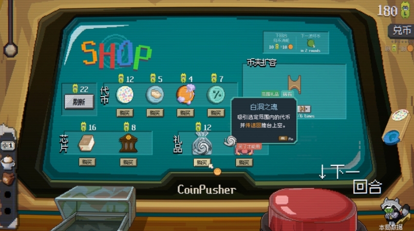 2.可以使用赚来的金币购买各种装饰品,个性化装扮你的浣熊老板和推币机所在的角落。