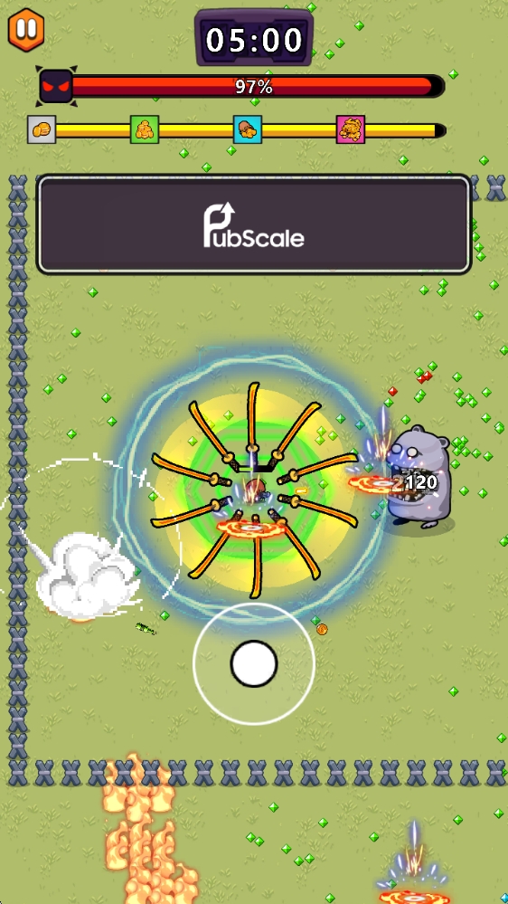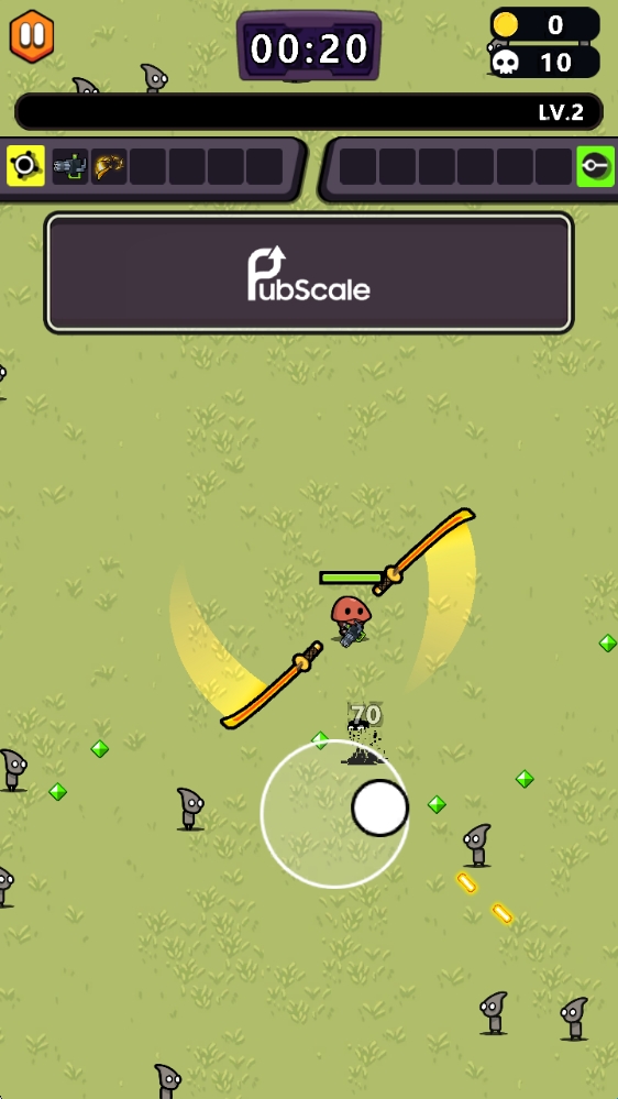 1、操控你的小英雄灵活的走位,消灭源源不断出现的敌人,升级并学习新技能,提升你的火力。