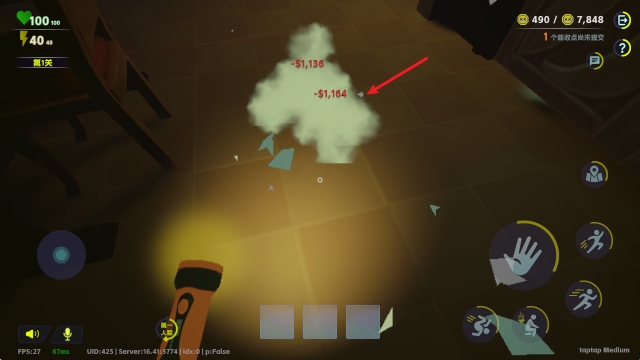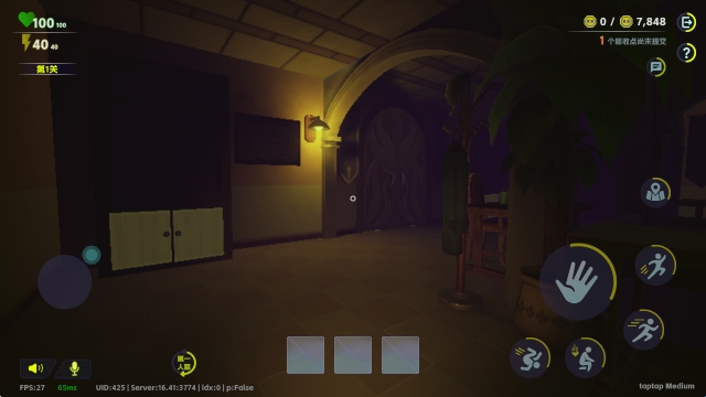1、进入游戏后,左侧的摇杆控制任务进行移动。