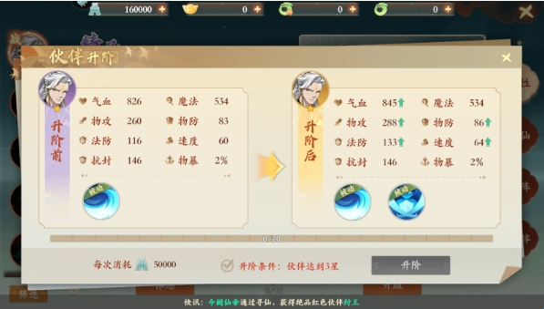 2、伙伴等级:通过道具提升,伙伴获得少量属性
