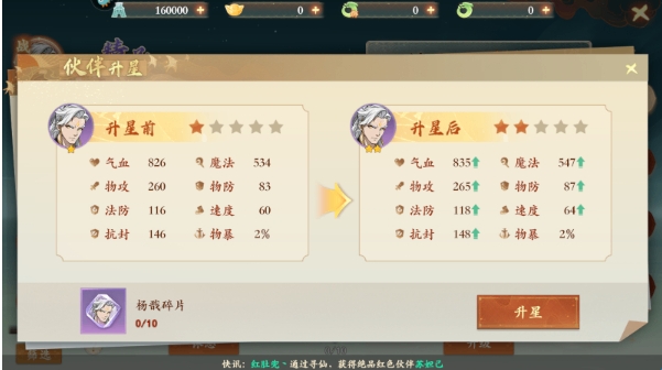 1、所有伙伴都能升星,最多升至5星2、伙伴升星后,属性会获得一定提升