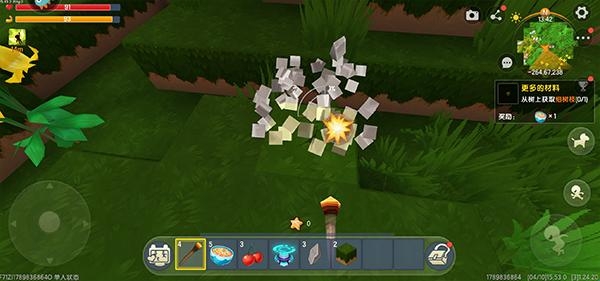 7、从树上获取细树枝,完成这个任务需要先来到树木旁边,通过砍树获取相应的细树枝;