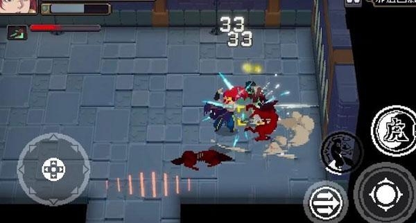 2、游戏中采用了像素风格和逐帧手绘动画,使游戏的动作打击感显得非常真实,拳拳到肉,箭箭穿心!虽然是像素风格,但是偏向写实,不同于《元气骑士》的可爱风格,使人眼前一亮。必杀技名字虽然有些中二,但是特效声效都十分震撼。