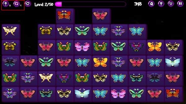 4、如果在后期玩的过程中找不到可以消灭的蝴蝶,可以用右上角的提示按钮来帮助你更快地定位能够消除的蝴蝶。