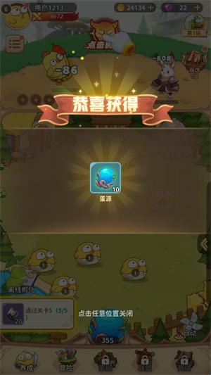 2、孵化后的小鸡可以进行合并,相同数字的小鸡可以合并提升等级。