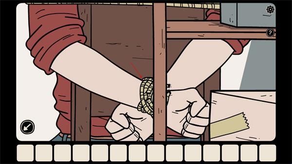 1、游戏的开始就是主角被绑住了,你需要点击自己,磨动绳子的方式来将自己解绑。