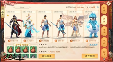 1、在跨服战正式开始之前的战团组建,是跨服取胜的重中之重。必须注意的是,跨服战的战团成员不限同国籍,凡是同服强者皆能并肩作战。所以,为了至高的荣耀,合作势在必行,不同国家的强者必须集结起来,将最高战力尽可能聚在一起,为服务器争取荣誉!