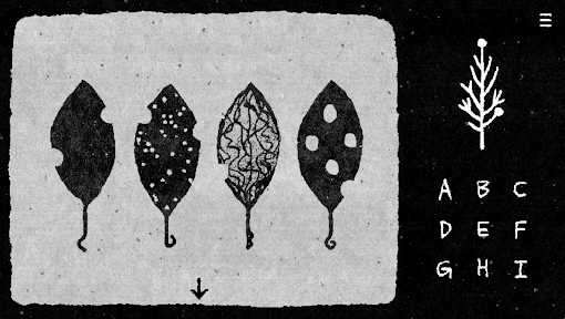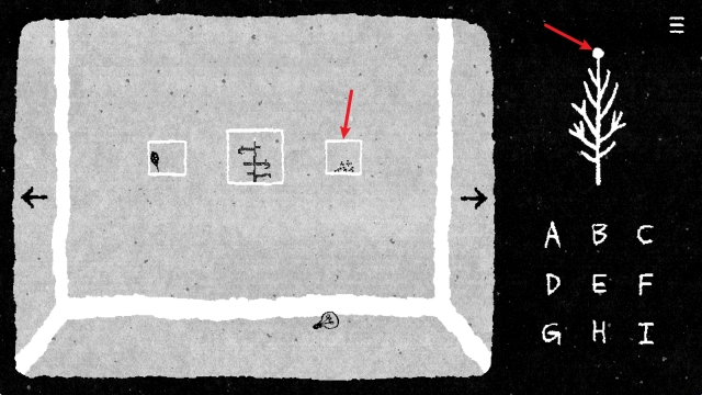 3、按照左侧还原后白点的位置和顺序,点击右侧的字母,再点击小树即可出现第二个点。