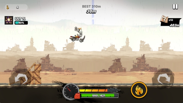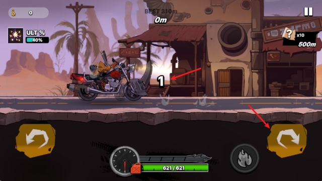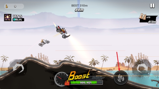 2、当摩托车飞起来之后,通过左右两侧的按钮来调整摩托车平衡。