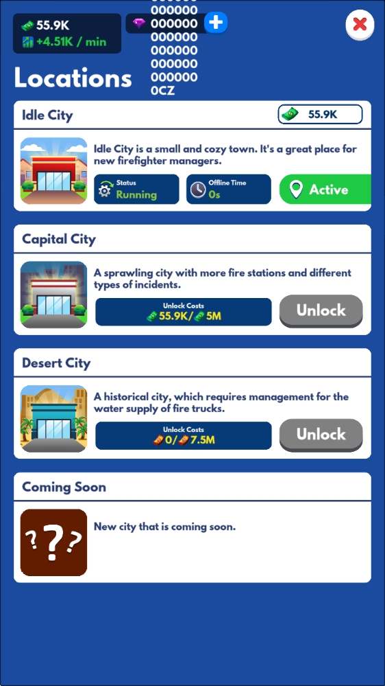 空闲消防员大亨是一款消防主题的休闲经营养成游戏。在游戏中,你将从零开始建造一座现代化消防站,招募精英消防员队伍,装备先进的灭火设备和救援工具。城市中随时可能爆发火灾、爆炸或自然灾害,你需要迅速出动,指挥团队穿越险峻环境,扑灭熊熊烈焰,营救被困群众。每成功完成一次紧急任务,都能收获丰厚金币和资源,用来升级消防车、扩建车库,甚至解锁直升机和潜水装备。