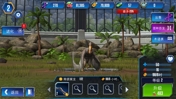 1、经营管理自己的恐龙公园,使用公园内的设施来培养恐龙。