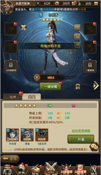 升星能大幅提升武将的属性;同时升星也是提升武将技能等级的唯一途径
