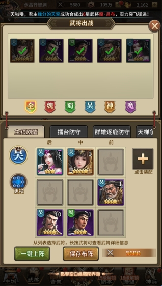 上阵指定阵营的武将也可在战斗中获得属性加成,根据自己已有的武将合理搭配阵型也能大幅提高胜率呢;具体搭配可在[武将出战]面板中点击阵营图标查