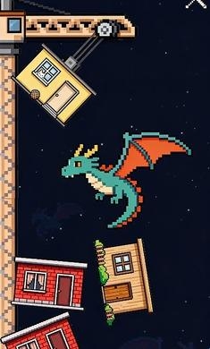1、操控一台温馨的塔吊,吊起形状、重量各异的可爱楼层。它们会像真实的钟摆一样不规则摆动——你的任务,就是看准时机,点击屏幕,将它们一层层向下放置。