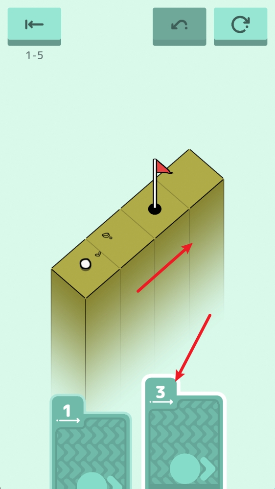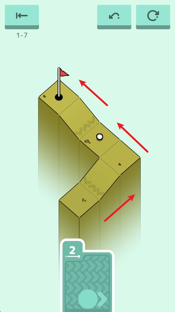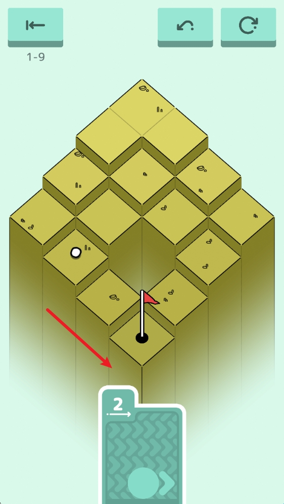 2、第六关:这一关向着箭头方向滑动即可,球会自动滚到洞中。