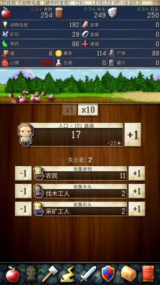 先游戏刚开始的时候你必须合理分配工人,工人是游戏中最为基本的单位,基本的资源除了我们双手点击外来获取资源,还可以合理的分配工人来替你获取收集资源,工人分别有采集食物的和采集木头采集石头的工人,工人也能帮我们获得基础资源。所以前期肯定的来合理的分配工人帮你,这样的话才能让你的手指歇会,不然光靠自己来点击屏幕获取资源是不行的。增加工人的同时还得给他们盖房,哈哈!是不是很现实化?