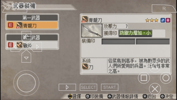 ③编年史模式:由六边格子组成中国地图貌,每个都是一个城或一关,打一把剑样子的格子得武器,打老虎样子的格子得支援兽,还能与诸多武将建立友好关系,打完所有格子会有影藏格子出现。