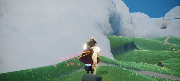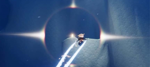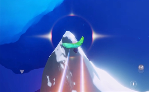 向地图左前方很多石柱的方向飞,并沿着石柱中间的小路进入山洞;在上方墙壁上有一个洞口,正好被石块挡住,可找到本季节第一个光之翼。