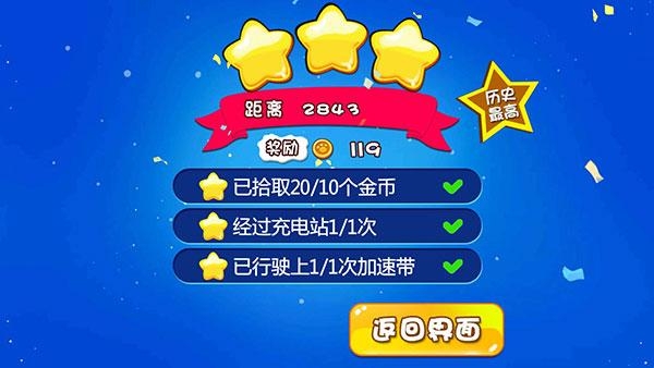 1、游戏为无尽模式,闯关界面中前会显示关卡需要完成的三个不同任务,每完成一个任务游戏结束时会得到一颗星星。