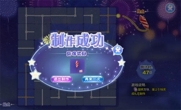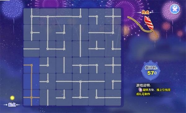 2、参与礼花制作的小游戏,接通礼花的燃放线,即可完成游戏获得礼花。