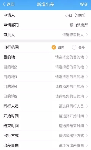 3、点进用车申请,编辑用车申请信息,即可提交。