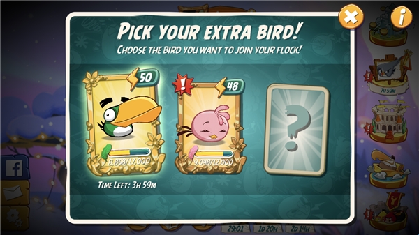 你有注意到大红旁边的问号吗?点一下它,你会发现我们挪出空间来扩展你的鸟群了!要解锁编外小鸟,你需要收集可在地图上找到的特殊钥匙。