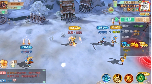巨鹿战场是一个阵营PVP的玩法,在战场中玩家将随机加入“汉”或“黄”的阵营,然后双方会自动向敌方阵营移动,中间不同阵营的玩家相遇后会进入战斗,失败后返回己方阵营,达到敌方阵营中心会获得大量积分。