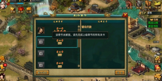 1、副本的各个章节由多个战役关卡组成,每当通过一个关卡即可开启下一个关卡。
