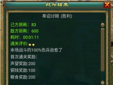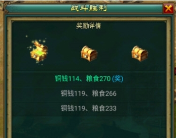 2、通过副本关卡的战役可获得丰厚的奖励,铜钱粮食、道具、装备和各种特殊宝物。