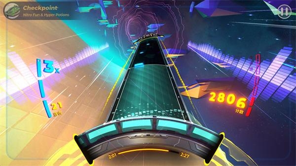 4、灵活转动轮盘来获得不同的分数,歌曲结束后会根据你的分数来决定不同的等级。