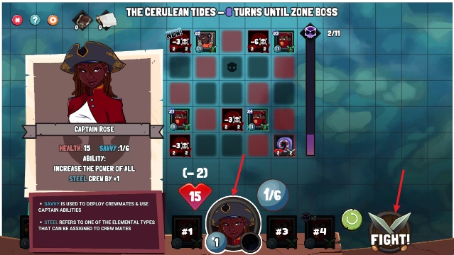 2、选择你的船长,组建你的船员,运用你的智慧解锁强大的连击,击败海怪,努力的生存下去。
