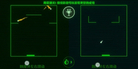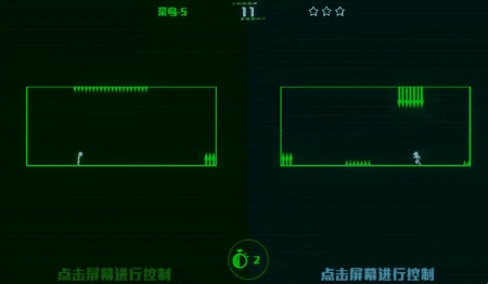 1、幕被分割为两端同时进行不同的小游戏,需同时控制左右手,一旦单侧失败即需重来。
