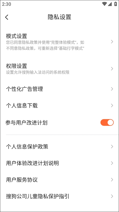 4、在隐私设置中,用户可以对应用的模式、权限等进行干预;