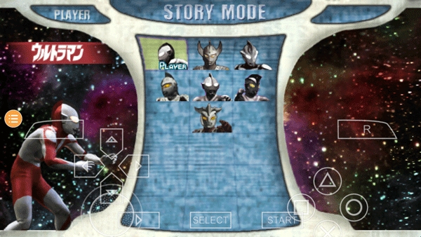 2、STORY MODE—故事模式:里选择奥特曼体验剧情,可以用来解锁人物和在关卡内获得的奥特曼精神。
