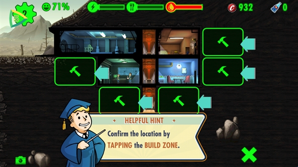 游戏开始时,首先需要建立一个房间。点击屏幕上的锤子图标,打开建造菜单。我们建议首先建造一个发电厂,它能为避难所提供必要的电力。点击“电源”来选择发电厂。