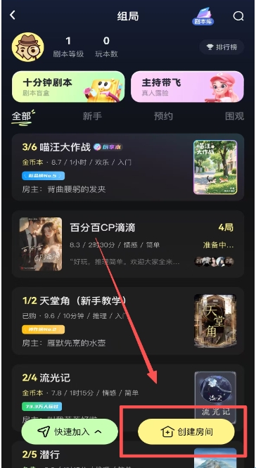 2、接着点击右下角的“创建房间”