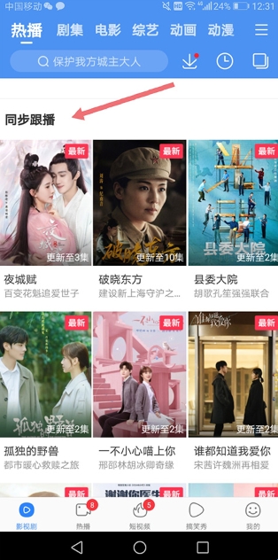 2、当然如果用户不知道自己想要看哪个电视剧可以进入软件主页面中的【同步跟播】,在里面选择一个最新的电视剧进行追剧。