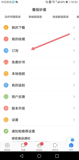 4、下次用户可以直接前往【我的】页面中点击【订阅】(下图红色箭头所指区域)即可找到自己订阅过的小说