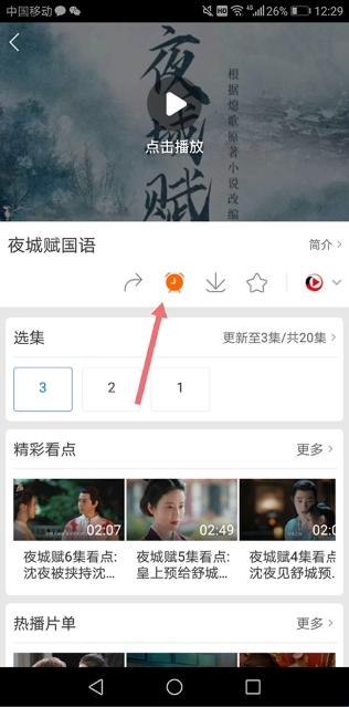 1、用户在进入想要追剧的电视剧播放画面中点击其播放画面下面的追剧按钮(下图红色箭头所指区域)将其处于开启模式即可,一般这个是默认打开的,用户可以选择关闭。