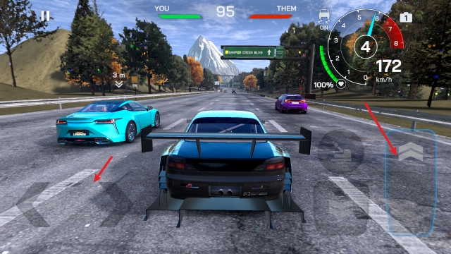 2、正式开始驾驶后,左侧的方向键控制转向,右侧长踏板加速。