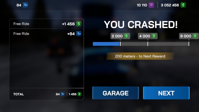 5、千万不要撞车,严重撞车后就会结束挑战,结算你的奖励。