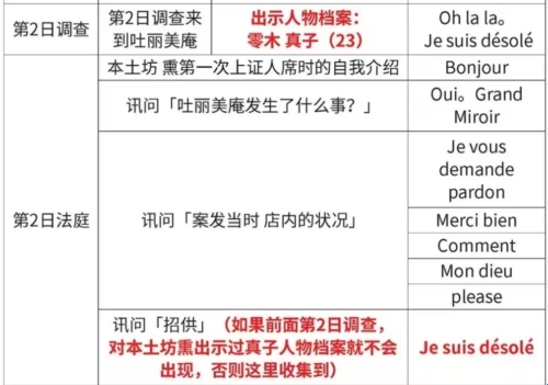 3、法庭部分,你将利用收集到的证据,听取证人的证词,寻问出其中与事实不符的部分。